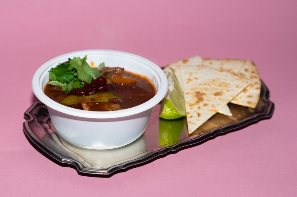Ситний мексиканський суп із телятиною, червоною квасолею та прянощами.