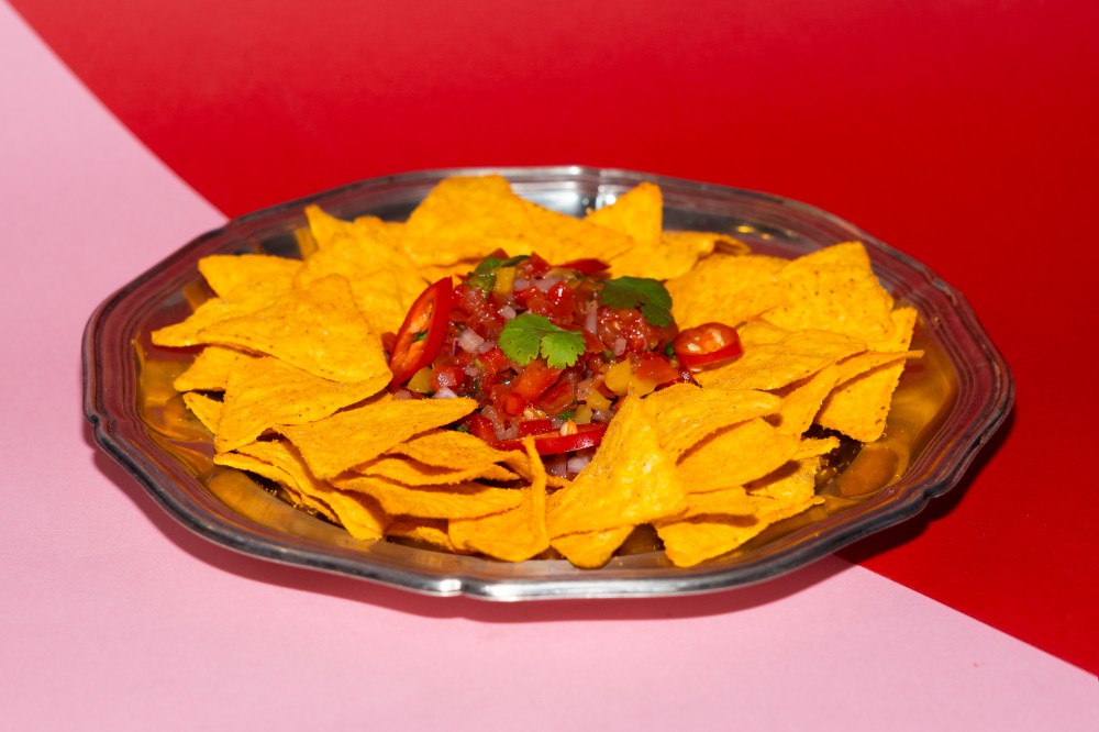 Кесаділья — тепла тортилья з сиром та начинкою на вибір, запечена до золотистої скоринки.Мікс сирів, шрі-айолі, томатна сальса зі смаженою кукурудзою.