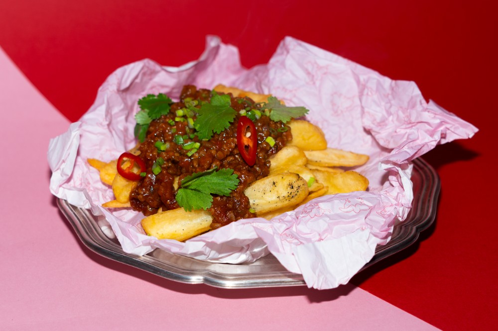 Соковите м’ясо з овочами у мексиканських спеціях, подається з тортильями.